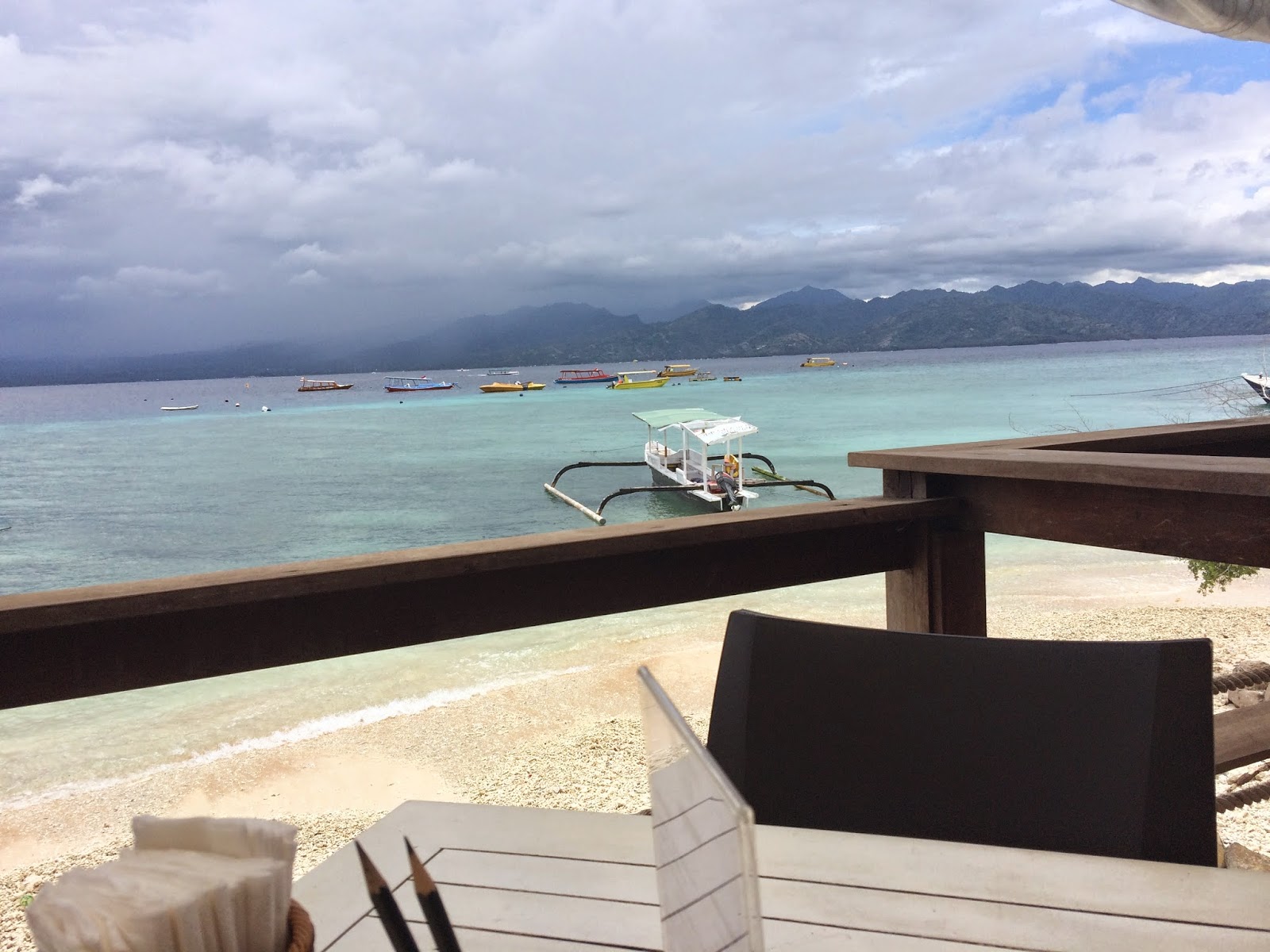 Abis mandi dan beres-beres, saya nyusulin Ikhsan dan Tarra buat makan siang di Egoiste, yang untungnya cuma sejengkal doang dari Gili Hostel. Duh gila ya, enak banget santai di pantai, duduk di bean bag, ngeliatin laut sama perbukitan, dan yang lebih kebetulan lagi muterin lagu yang lagi saya suka (Tom Odell dan Faul) Life is insanely GOOD at that time.