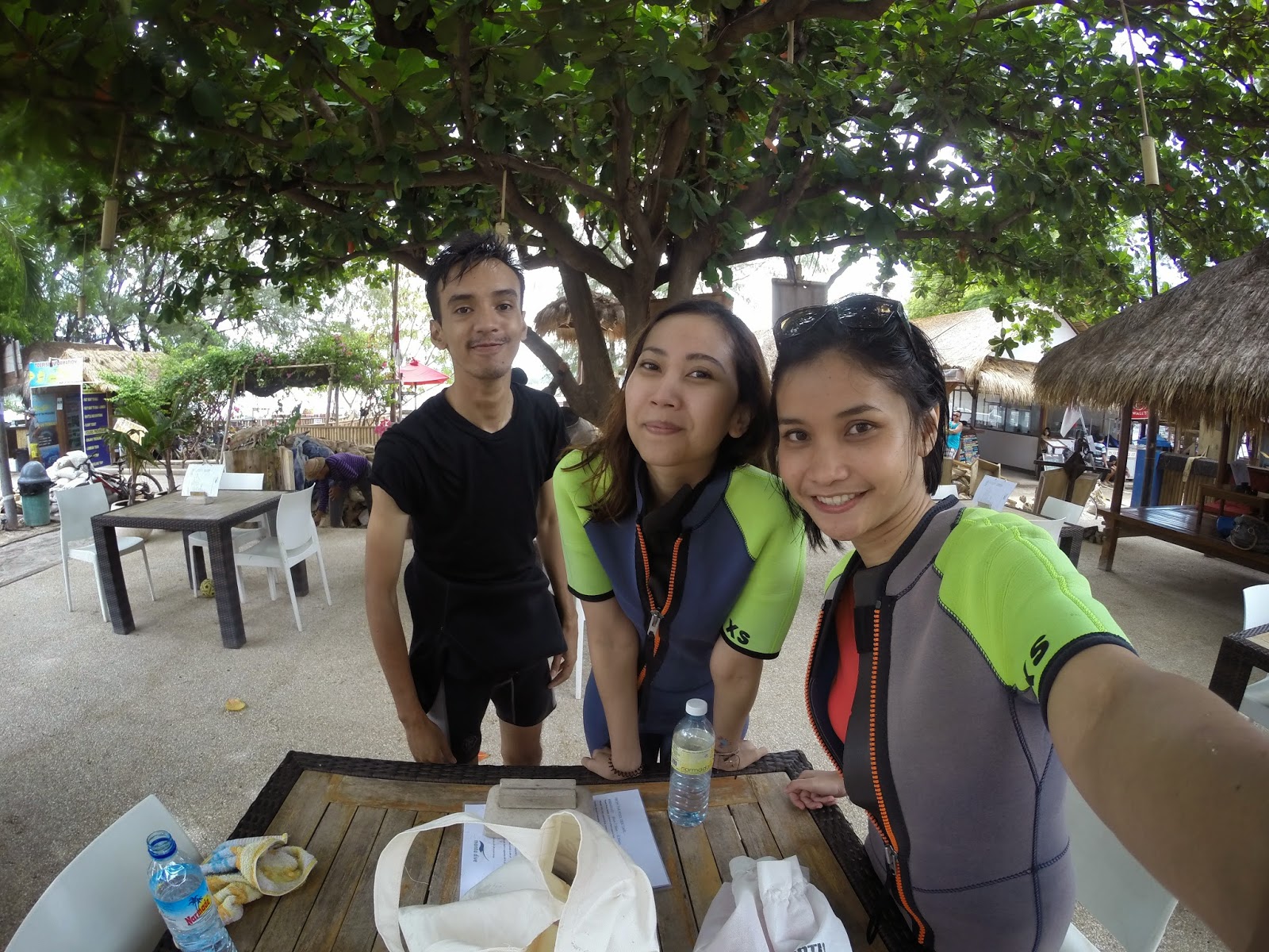 Pas lagi booking di resepsionis Gili Hostel, pas banget ada telfon dari Ikhsan, salah satu customer GoPro yang kebetulan weekend ini ke Gili juga buat diving. Jadilah saya nyusulin ke Manta Dive Resort, tempat mereka menginap, yang juga sekaligus provider diving kita besok pagi.