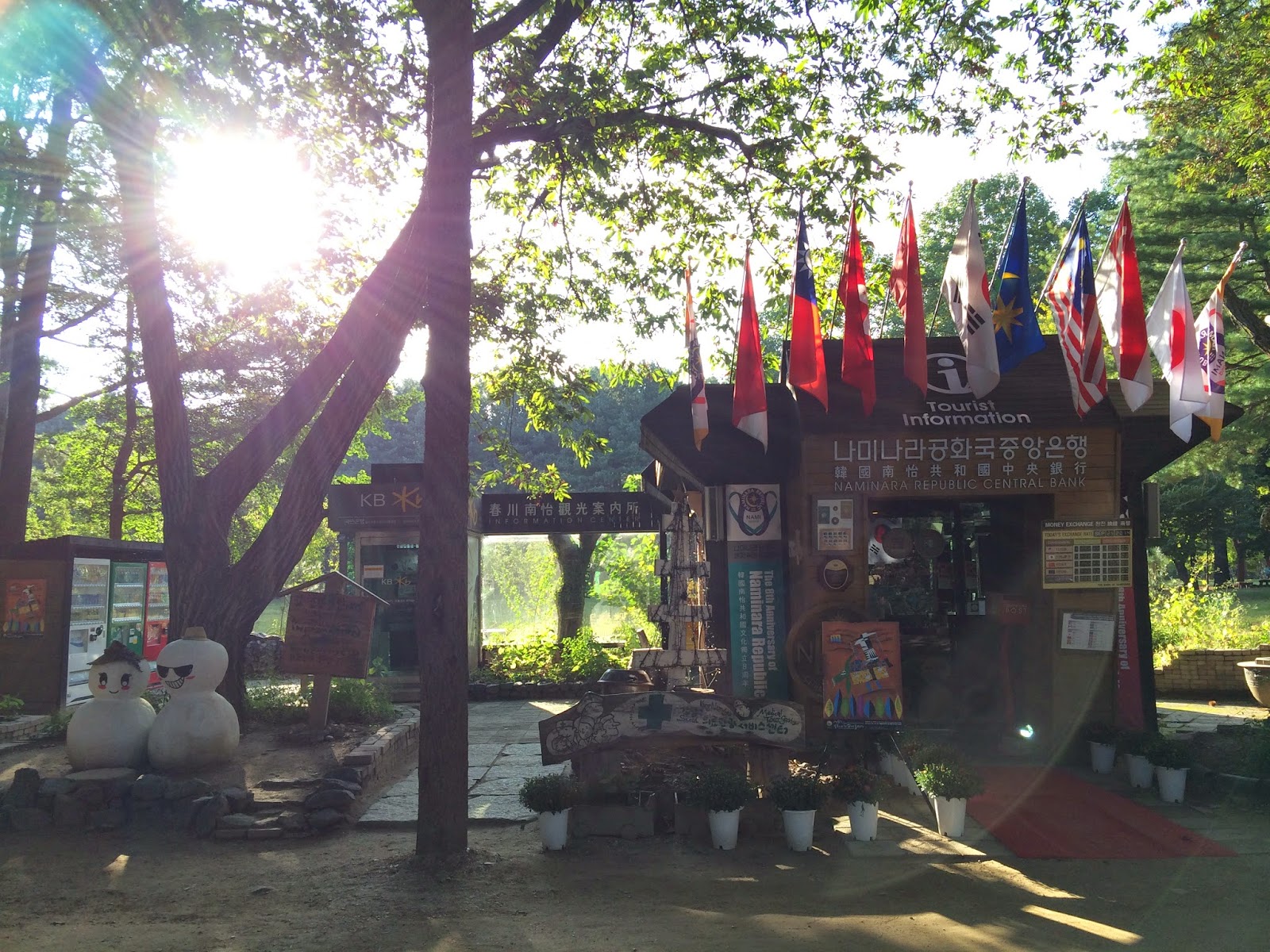 Dari istana raja, kita langsung diangkut lagi untuk menuju pulau kondang besutan film Winter Sonata. *Anak 90-an awal pasti paham nih film beginian* Iyak tepat sekali, Nami Island! Nah..katanya, Nami Island itu keliatan paling cakep pas autumn. Kebayang dong, betapa tinggi harapan saya akan keeksotisan semburat coklat kemerah-merahan yang akan menyambut kita di pulau ini. Secara kan nih pulau terkenal dengan pohon-pohon tinggi berjejer di sepanjang jalannya. Hehh, pas sampe sana, daunnya masih hejo semua aja gitu. Setelah sedikit intropeksi, baru paham kalo sekarang itungannya masih awal autumn banget, dan kayaknya daun-daun ini baru mulai kecoklatan di Oktober, dan kemudian berguguran di November sebelum masuk winter di Desember. Sedihnya, begitu foto-foto, lebih mirip kayak lagi jalan-jalan di Kebun Raya Bogor 🙁