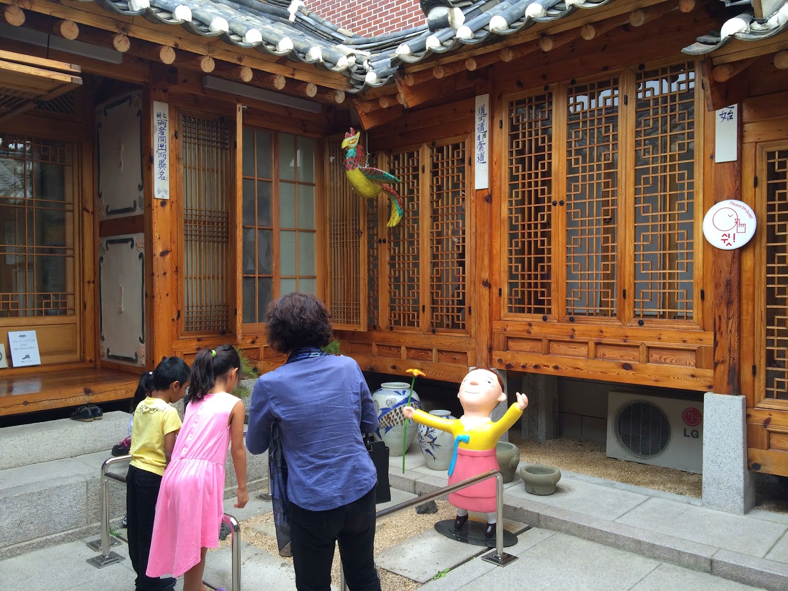 Pagi-pagi kita dijadwalin buat mengunjungi Hanok Village, residensial yang masih memiliki ke-otentik-an khas Korea. Saya pribadi suka banget sama daerah ini, karena bikin lebih berasa di Korea dan rumah-rumahnya lucu-lucu buat background foto, trus jalanannya juga enak banget buat di eksplor. Disini ada 1 rumah yang memperbolehkan kita buat masuk dan liat-liat dalemnya kayak apa, FREE! gak usah pake bayar. Tapi kalo sampeyan mau yang bayar juga ada, malah katanya kalo di tempat yang bayar ini bisa dapet jamuan teh segala.