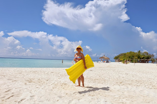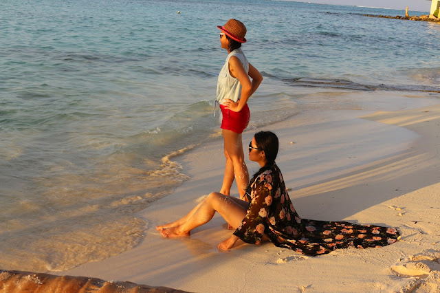 Selesai melahap nasi panas dan dendeng, saking udah gak sabar-nya mau gegenitan di pantai, jadi deh kita langsung ngibrit ke private beach, pantai khusus buat turis bikini-an yang orang lokal udah pasti gak diperbolehkan masuk ke kawasan pantai ini. Mengingat Maafushi ini pulau penduduk lokal, jadi emang gitu rules-nya, gak boleh sembarangan pake bikini di public beach, makannya mereka bikin pantai khusus untuk turis biar bisa juga memfasilitasi turis-turis bule yang udah pasti doyan bikinian.