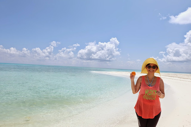 Di Sand Bank baru deh tuh berasa panasnya naujubilah, dinamain Sand Bank karena ini gundukan pasir doang di tengah laut, cuma ada 1 payung nancep buat berteduh rame-rame. Disini saya dan Aya cepet-cepet nyempetin makan sama foto-foto, habis itu langsung cabut ke 2 spot snorkeling yang katanya kita bakal nemuin Turtle dan Eagle Ray di spot-spot itu. Sayang nampaknya kita kurang beruntung, gak ada seekor Eagle Ray pun yang lewat pas kita lagi mampir di sana. Coral di spot ke-4 lumayan bagus-bagus sih sebenernya. Emang dasar ya, kalo udah diving tuh pasti udah susah nikmatin snorkeling. Walaupun bagus tapi gak se-excited diving aja gitu. *Blagu*