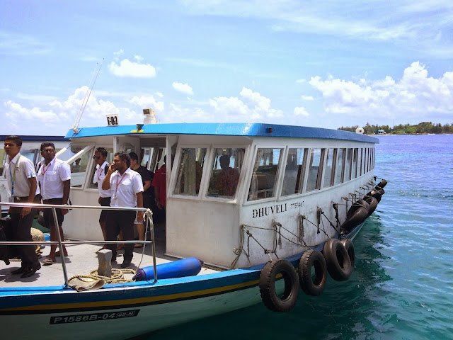 Berhubung agenda kita hari ini mau langsung cuss ke Maafushi Island, pulau mini berpenduduk 90 keluarga yang biasanya dijadiin base buat para turis irit selama meng-eksplor Maldives. Cara paling mudah menuju pulau ini dari bandara Ibrahim Nasir *berasa kayak di Aceh gak sih nama bandaranya* adalah sbb :